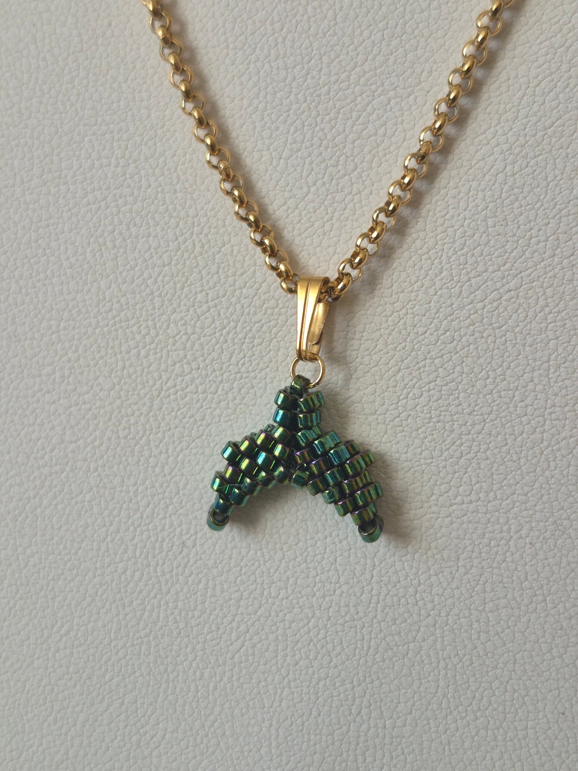 De Velora ketting is geïnspireerd op de sierlijke vorm van een walvisstaart — een krachtig symbool van vrijheid, diepte en vertrouwen. In de oceaan staat de walvisstaart voor richting en beweging: het moment waarop de walvis afdaalt naar haar eigen diepte, gedragen door kracht en rust. Deze betekenis is vertaald in een met de hand geweven hanger, opgebouwd uit glaskralen met een betoverende, iriserende glans die bij elke beweging tot leven komt.